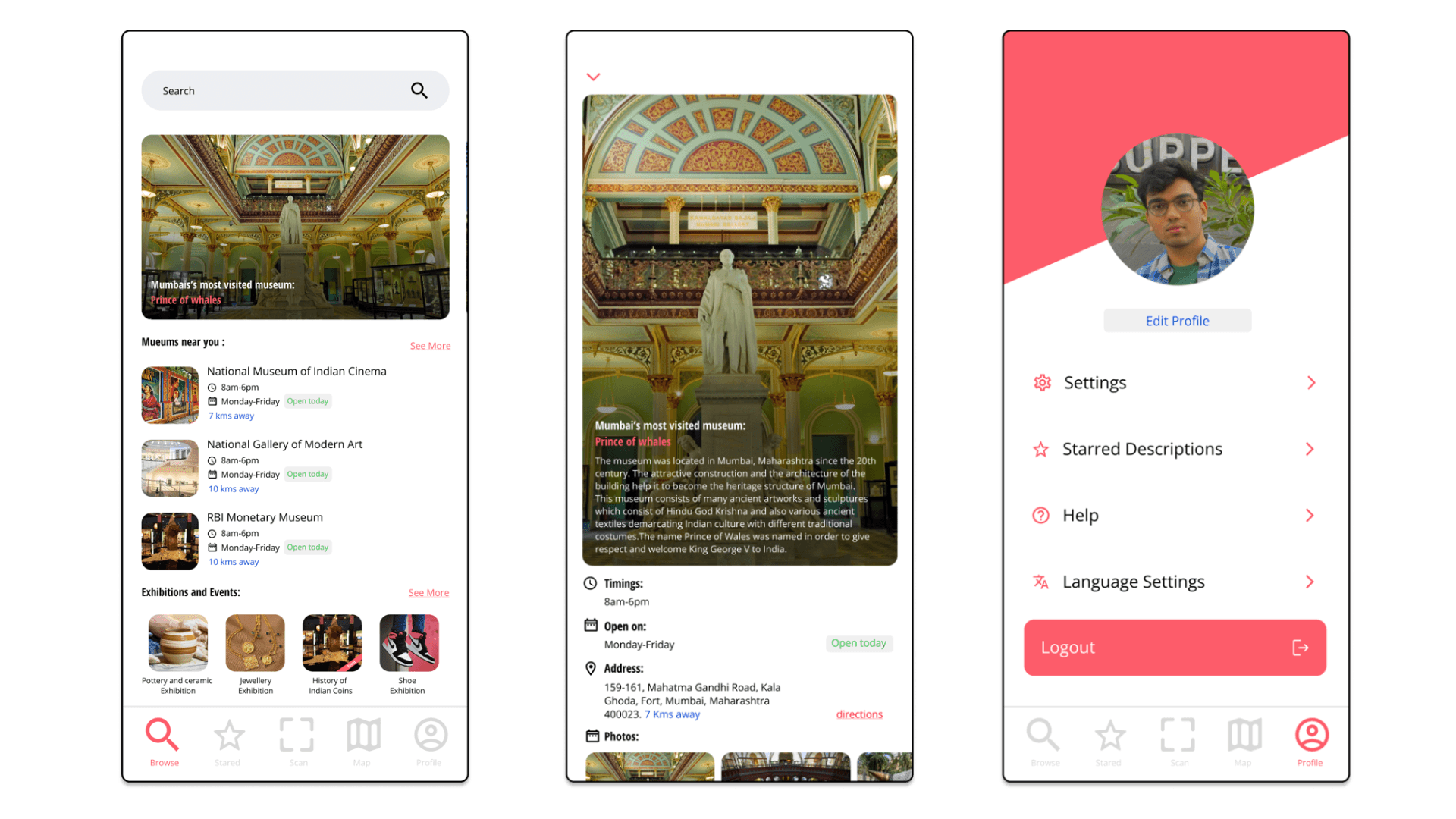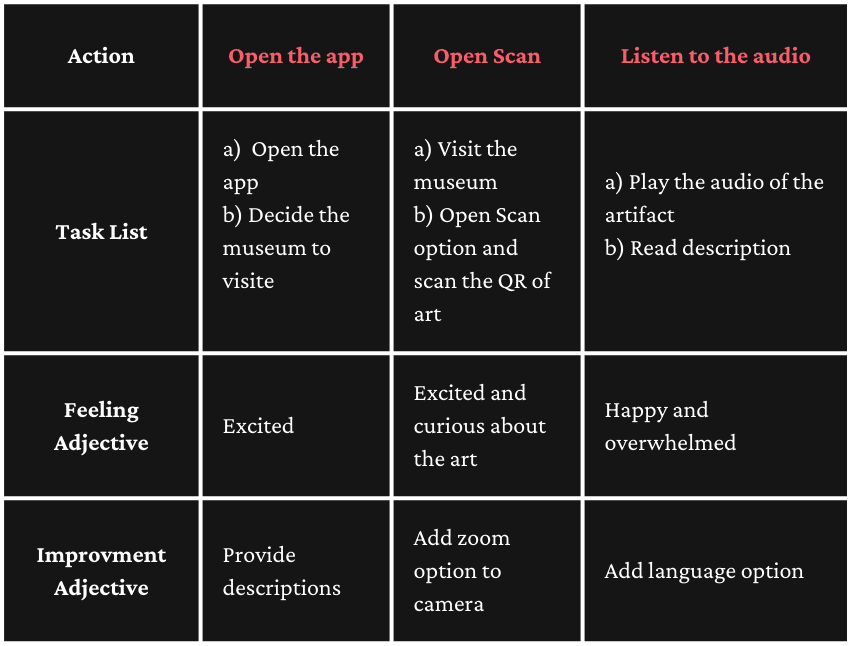 I conducted a few interviews with friends, family members, and with some people who frequently visit museums which helped me understand the target audience.