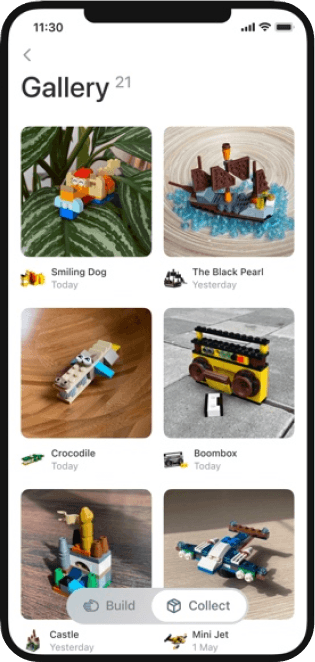 Once the scanning is over, the user sees a build button which takes them to a list of pieces scanned.