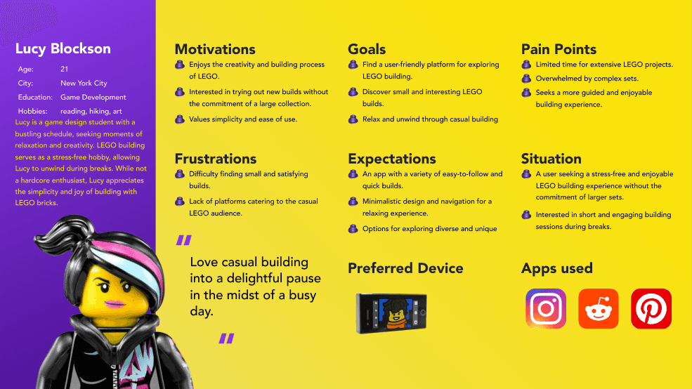 in an app that suggests easy and quick builds, aligning with the laid-back nature of their hobby.