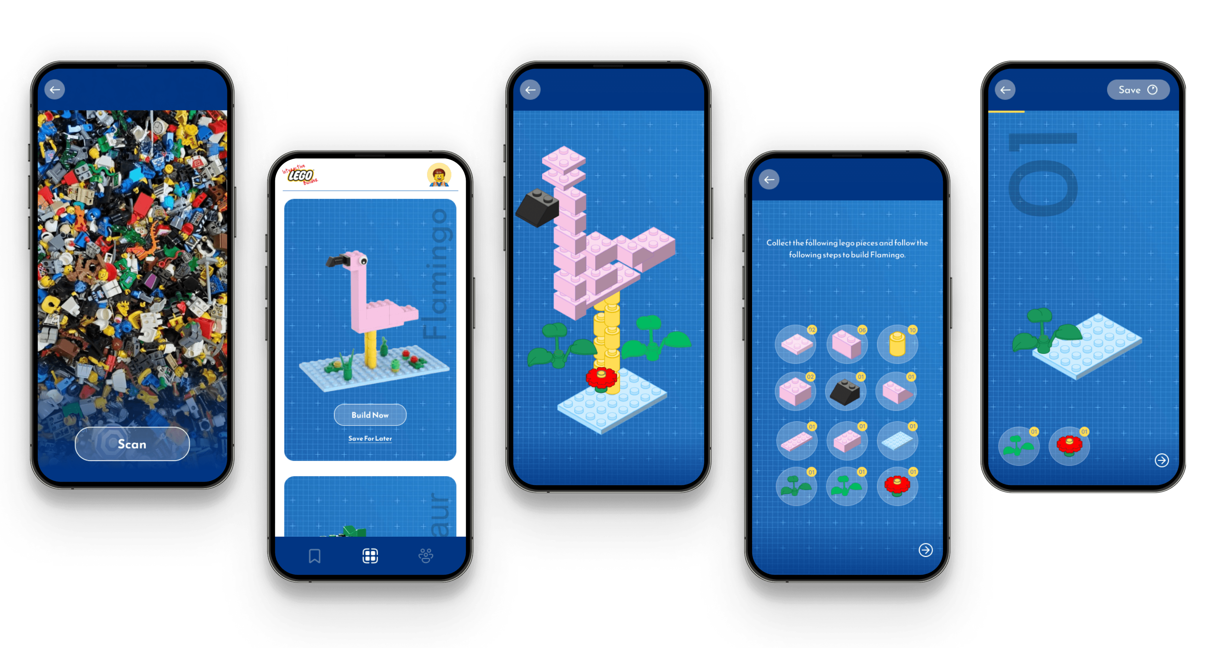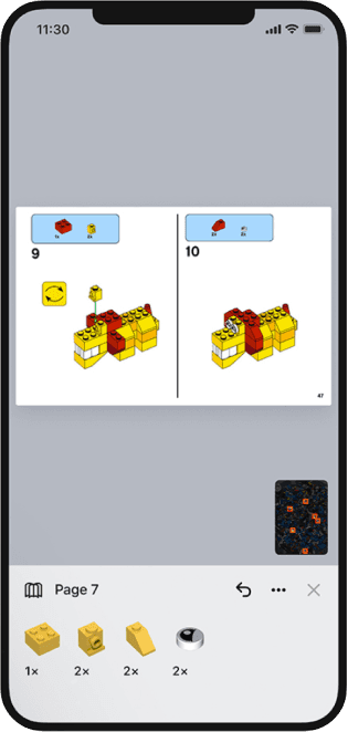 User will be prompted to collect bricks in real life to follow along with the interactive steps.