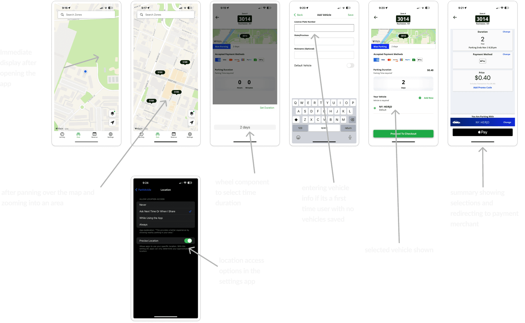 Using contextual inquiry, we interviewed 8 people (average age 25) in their natural environments to understand their experiences and challenges with parking apps. and found that parking apps often fail to deliver a smooth experience.